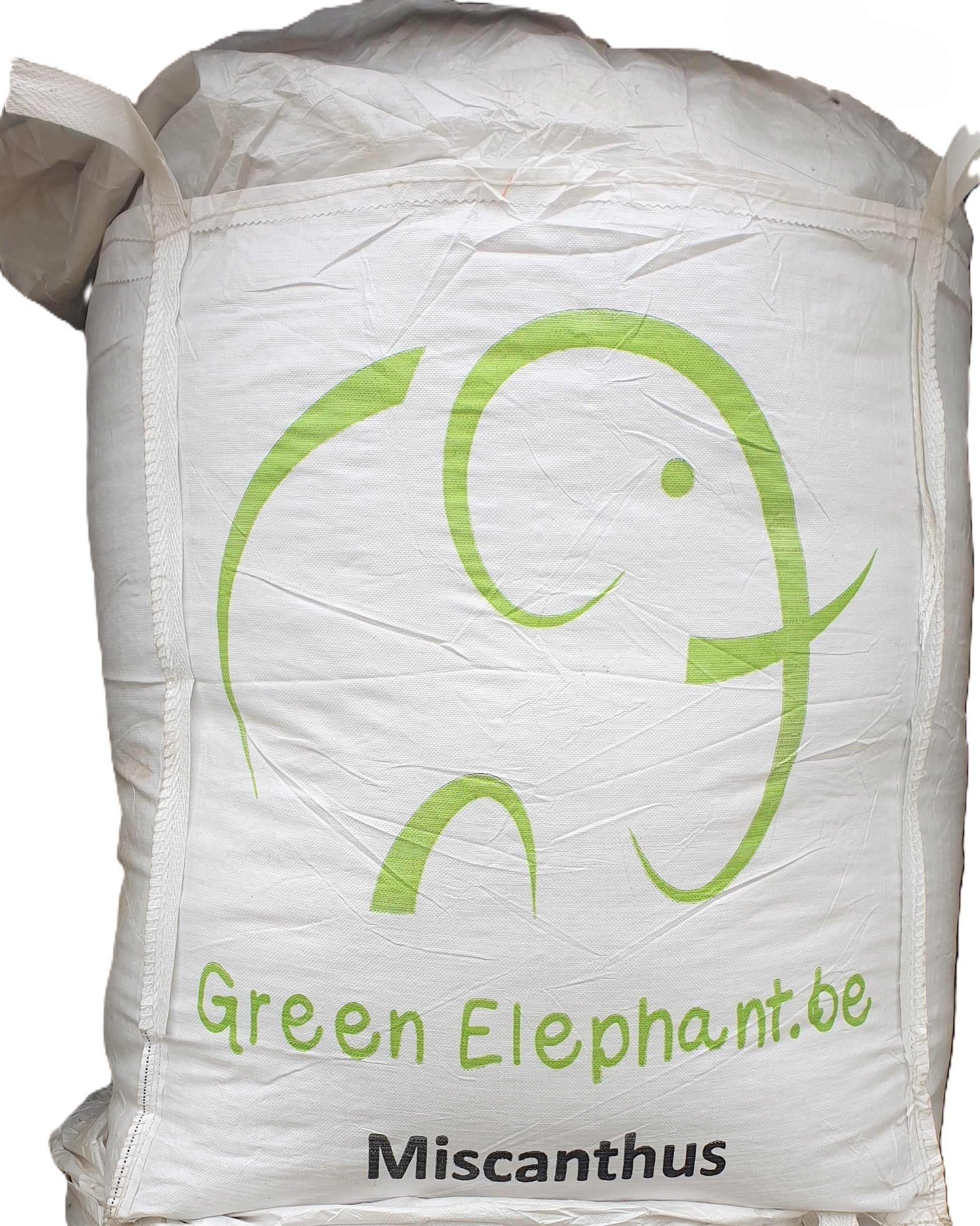 Tuinbouwmulch van gezeefd en bestoven Miscanthus, verpakt in 250 kg Bigbags.
